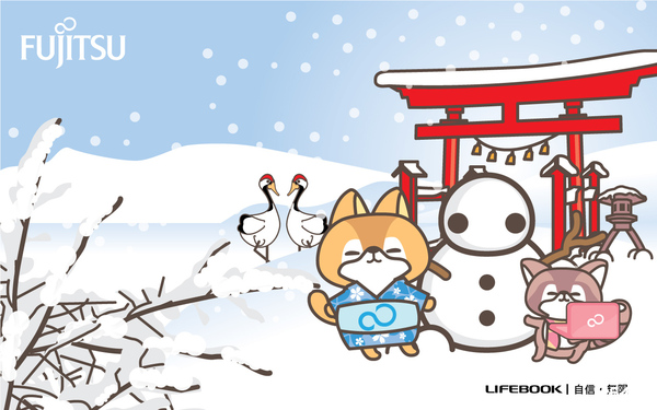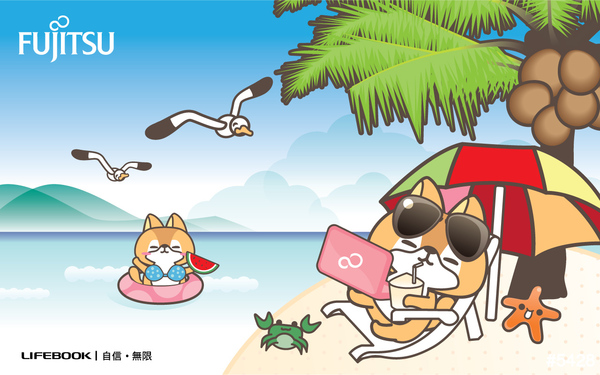 我在Fujitsu LIFEBOOK Club那邊,看到了發布的wallpaper,真的是可愛的要命耶!我馬上就先下載海邊風格的來放在電腦桌面上。本來還在猜裡面的動物是什麼?好像是貓咪,又覺得是日本狐狸,看了半天之後,才知道…….原來是秋田犬啦!怎麼那麼可愛!!!
